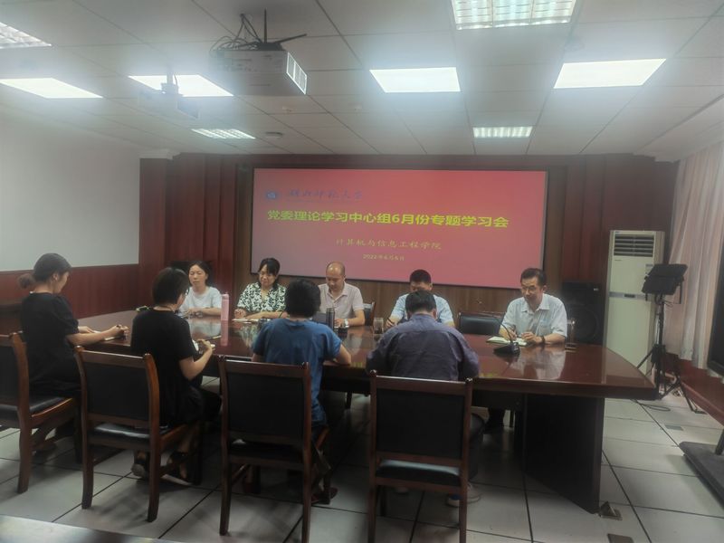 6月6日下午,学院党委理论学习中心组在教育大楼1715会议室举行6月专题学习会。学院党委书记王舒怀主持,院党委理论学习中心组全体成员参与学习。
