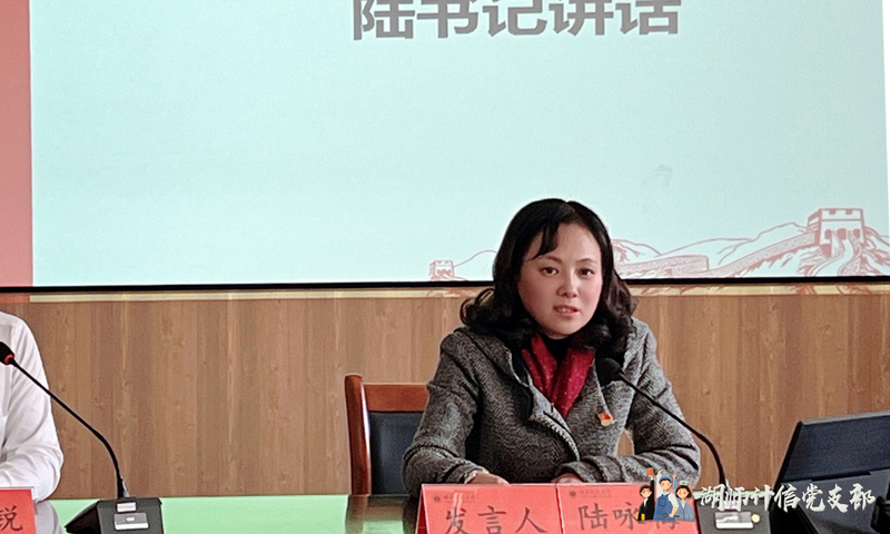 随后,陆咏梅为全体同志讲授《为中华民族复兴书写青春答卷——学习贯彻习近平总书记在纪念辛亥革命110周年大会上的重要讲话》的专题党课。她从辛亥革命的背景及概况出发,讲解了辛亥革命的重大意义,接着详细解读了习近平总书记在大会中提到的辛亥革命的“五大启示”,引导教育全体党员要读懂历史启示,推进伟大复兴,共创美好未来。她勉励党员同志要勇担时代使命,于实践中锤炼坚强党性,要与实践力行相结合;要迈步复兴征程,在奋进中放飞青春梦想,与青春未来相结合,要“立大志,明大德,成大才,担大任”;要努力成为堪当民族复兴重任的时代新人,让青春在为祖国、为民族、为人民、为人类的不懈奋斗中绽放绚丽之花。