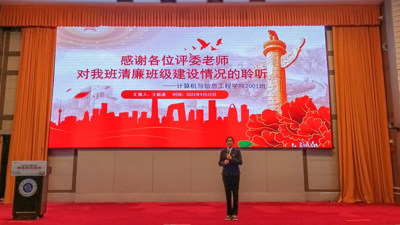 2022年9月22日晚上,在教育大楼报告厅开展了“清廉班级示范建设汇报”主题演讲,由主讲人王颖涵负责此次汇报。