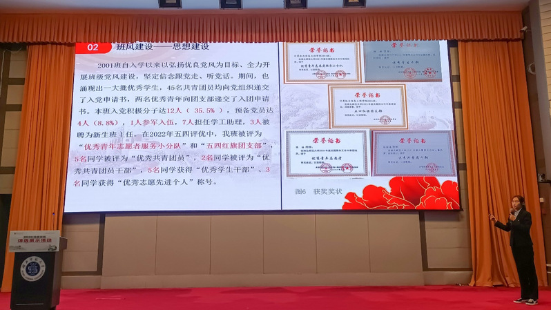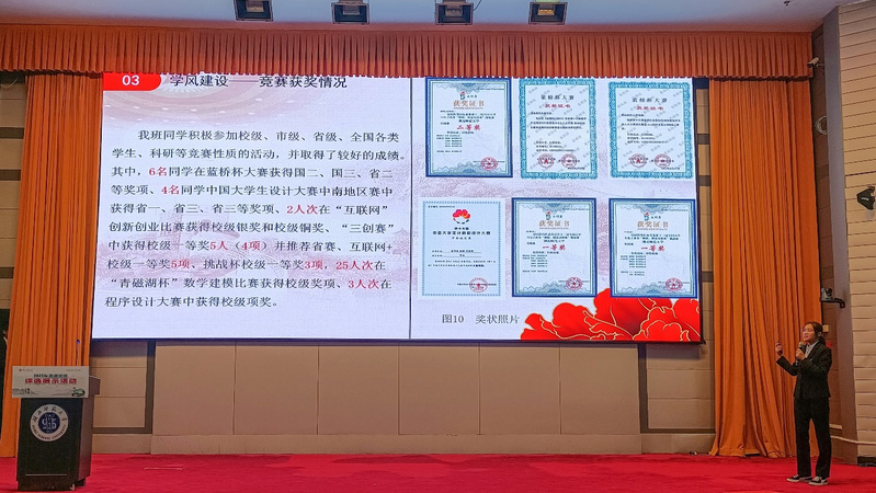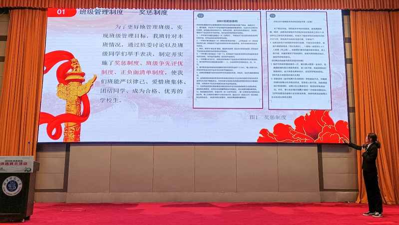王颖涵同学引领我们深入了解计算机信息与工程学院2001班清廉班级建设情况,内容为五个部分。分别是制度建设,班风建设,学风建设,班级文化特色以及对未来的目标。最后进入答辩环节,评委老师对此次汇报提出问题,主讲人进行完美解答。与此同时我们也见识到其他学院的特色清廉班级文化建设,充分展现了各个学院的特色,彼此交流获益良多。