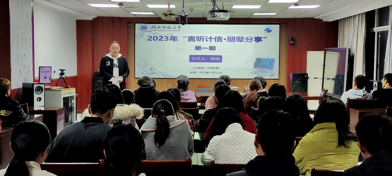 2023年11月12日晚,计算机与信息工程学院在教育大楼1715会议室举办第一期“言听计信·朋辈分享”考公考研经验分享会,邀请了2023届优秀毕业研究生、就职于大冶市委办的夏帆校友现场交流,部分在校大四、大三及研究生同学参加。辅导员卢老师主持会议。