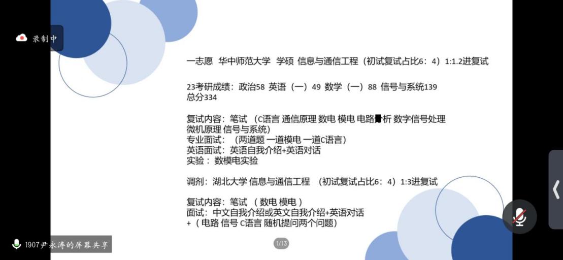 三位同学围绕招考情况、备考经验、答题技巧、面试心得、心态调整、读研目标等内容进行了交流与分享,并结合自身经历提出了宝贵建议。尹永涛讲到了心态的重要性,良好的心态是成功的开始,做任何事的时候都要保持一个良好的心态,这样才能取得成功;董宇轩介绍了复试所需准备的材料,并结合自己学校讲解了复试比例、复试时间、复试形式及复试内容等;王施琦向大家介绍了与调剂相关的内容,让大家了解到专业是灵活互通的,掌握信息获取方法和渠道,多了解调剂信息。最后,他们衷心祝愿学弟学妹们都能实现自己的梦想,把学院这种优良的学风传承下去。