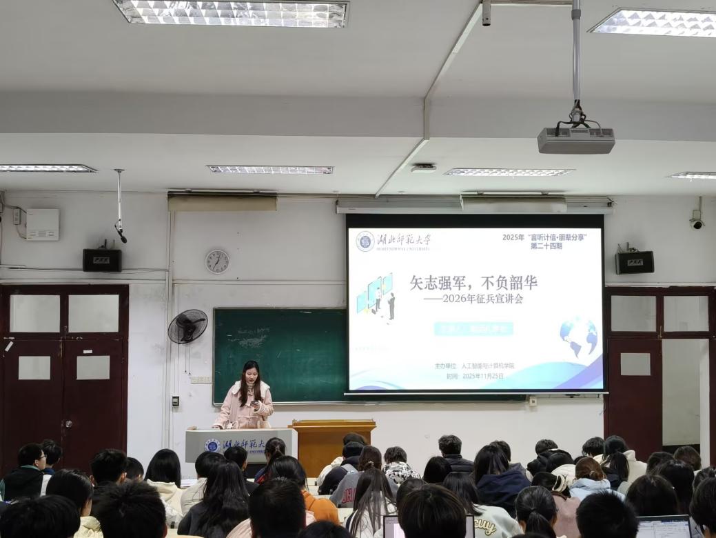 (通讯员:黄泽乾2025年11月25日)为深入宣传国家征兵政策,激发学子携笔从戎的青春热情,搭建退役学子与在校同学的交流桥梁,11月25日晚19:10,伟德国际1946源于英国第二十四期“言听计信·朋辈分享”征兵宣讲会在教育大楼1J12顺利举行。本次活动特邀优秀退役士兵帅远礼担任主讲人。