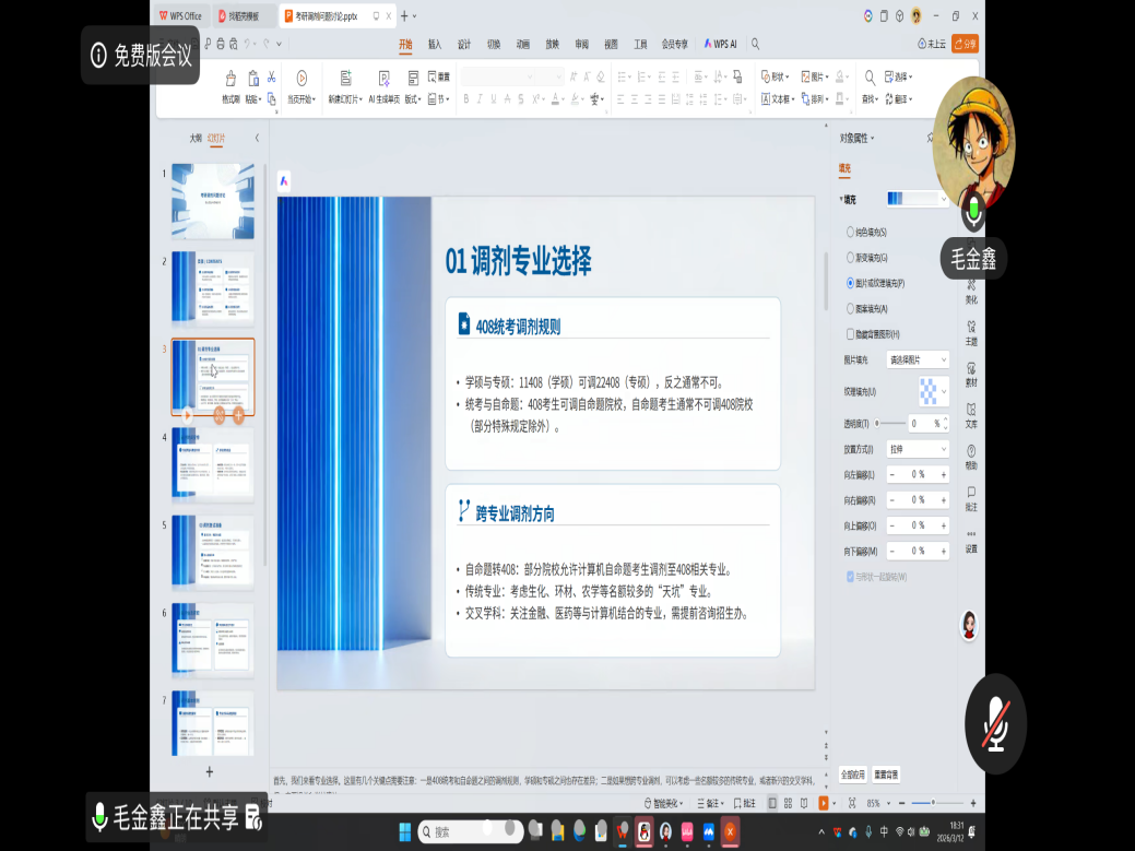 随后,毛金鑫学长围绕考研调剂核心问题展开系统策略分析,从专业选择、时间安排、复试准备、信息获取、基本规则等方面逐一讲解。他明确408统考与自命题的调剂规则、国家线及专业代码的硬性要求,指出调剂系统4月中旬开放的黄金窗口期与5月底前的多轮补录机会,强调调剂复试需端正态度、备好中英文自我介绍等核心材料,同时介绍两类调剂类型,并给出“能走尽量走”的实用建议。